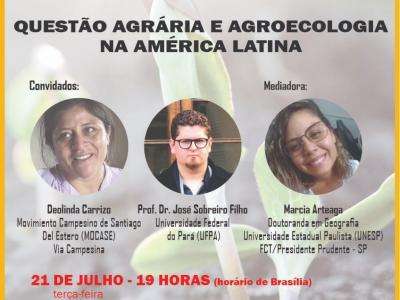 Webinar Rede DATALUTA | "Questão Agrária e Agroecologia na America Latina".  Debatedores: Huarmi Vilela (MOCASE- MNCI Via Campesina) Prof. Dr. José Sobreiro Filho (UFPA)  Mediação: Marcia A. Pertuz (FCT-UNESP)  Nesta terça-feira, 21 de julho às 19h00  Ao Vivo no YouTube da Rede Dataluta  Ao Vivo no Facebook da Rede Dataluta https://www.youtube.com/watch?v=d9y7AzYkqvs